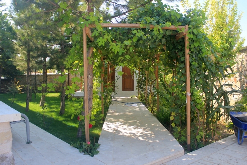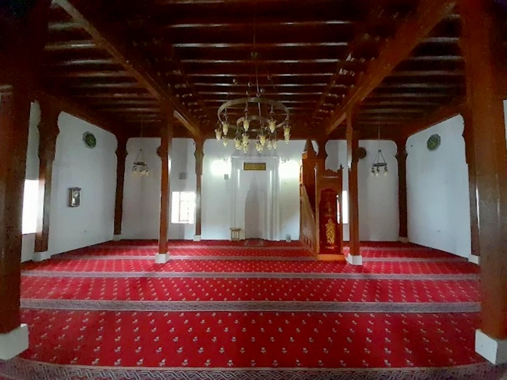 Giriş, kesme taştan dikdörtgen bir portal içerisinde yer alan yuvarlak kemerli kapı ile sağlanmaktadır. Tavan örtüsü ahşap işçiliği özellikleri göstermektedir.