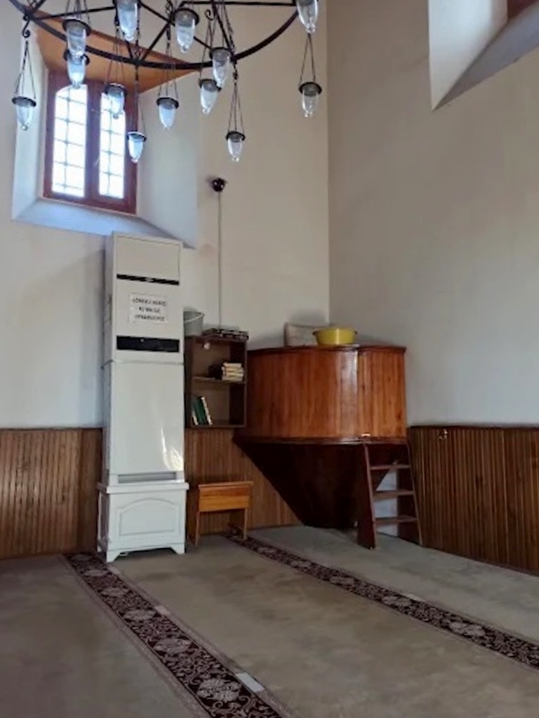 Üç ahşap sütun üzerinde taşınan tavan ahşaplarla kaplı son cemaat mahallinden girilen cami, 100 metre kare civarında küçük bir mescid. Giriş kapısının tam karşısında oyma nişli taş bir mihrap bulunuyor.