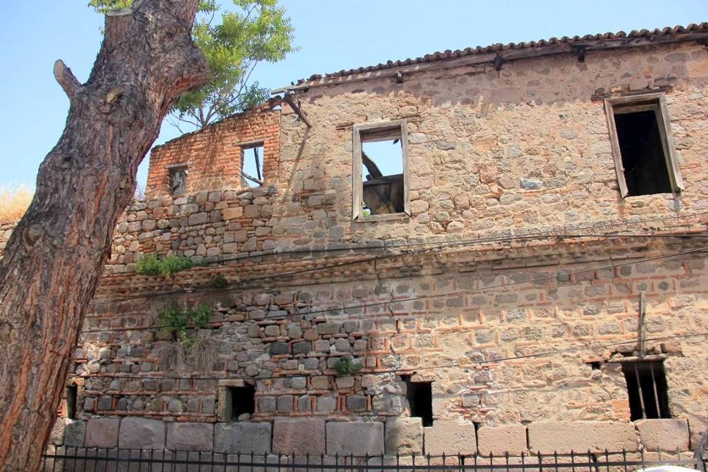 Bina, esasında bir katlıydı. Çeşitli antik sütun, başlık ve altlıklar kullanılmak suretiyle meydana getirilen saya arkasına odalar dizilmiştir. İkinci kat, sonradan ahşap olarak yapılmıştır. Büyük kapının tam karşısında ahır kapışı vardır. Kapı, iki merkezli klasik (19 taşlıdır) Türk kemeridir.
