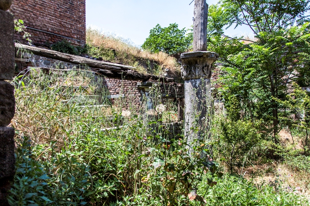 Kapı önünde bir tonoz veya kubbenin bulunduğunu, kalan kemerin izlerini anlatmaktadır. Kapıdan girilince sağdaki oda ile sonradan ahır haline getirilen bazı odalar ve şimdi kapışı caddeye açılan bir oda (yazıhane) tonozludur. Tonozları çökmüş olan yerlere ahşap örtü yapılmıştır.